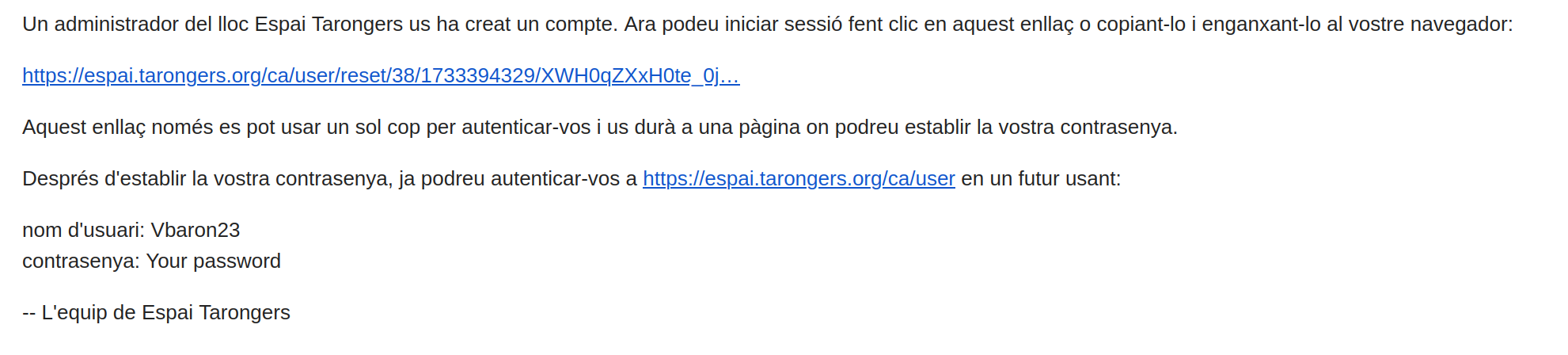 Aquest correu té un enllaç per activar el teu usuari a la web.